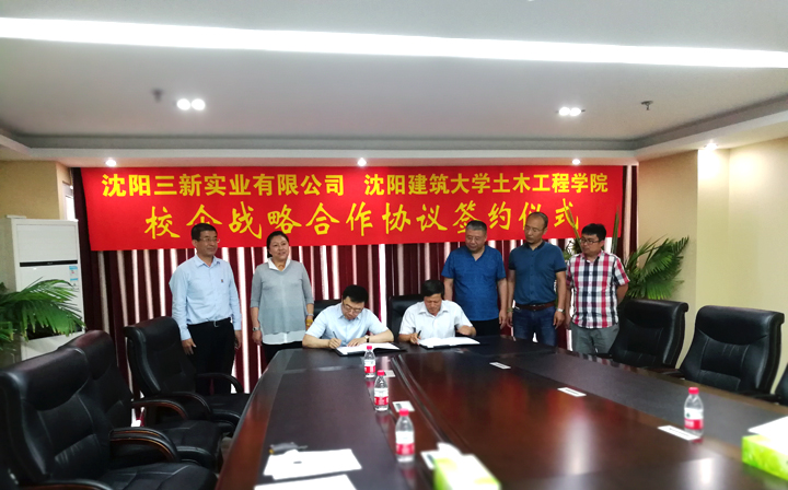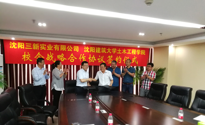 2017年6月14日,沈陽建筑大學(xué)土木工程學(xué)院賈連光書記一行參觀了三新集團廠區(qū)及總部,并進行了深入的會談。之后雙方正式簽訂戰(zhàn)略合作協(xié)議。雙方本著共同發(fā)展的目的,重點在人才培養(yǎng)、科技創(chuàng)新、技術(shù)交流等方面開展廣泛、密切的合作。雙方希望通過建立密切、長久及融洽的戰(zhàn)略合作伙伴關(guān)系,充分發(fā)揮高校和企業(yè)各自的技術(shù)和人才優(yōu)勢,緊密合作,提升企業(yè)的研究水平和競爭實力,同時增強學(xué)校應(yīng)用技術(shù)人才的培養(yǎng)能力,促進工程技術(shù)類應(yīng)用性學(xué)科的建設(shè)。協(xié)議的簽訂為進一步完善公司產(chǎn)學(xué)研模式,提高專利成果的轉(zhuǎn)化速度,都有著重要促進作用,同時為各自的今后發(fā)展增添新動力。