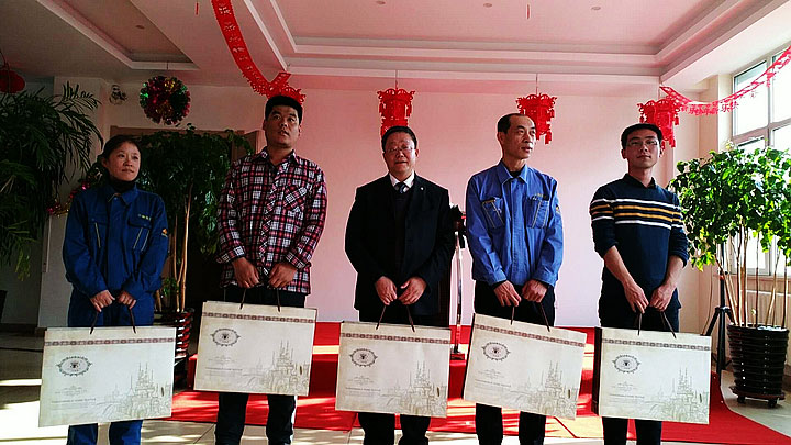 于東云董事長為標(biāo)兵頒獎(jiǎng)