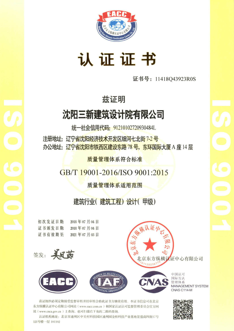 2018年6月28日~29日,北京東方縱橫認(rèn)證中心對(duì)沈陽(yáng)三新建筑設(shè)計(jì)院進(jìn)行質(zhì)量管理體系認(rèn)證審核,經(jīng)過(guò)兩天的審核,專家對(duì)公司的管理體系運(yùn)行情況給予好評(píng),滿足標(biāo)準(zhǔn)要求,同時(shí)也給出了切實(shí)的改進(jìn)建議。公司組織各部門對(duì)審核過(guò)程中發(fā)現(xiàn)的不符合進(jìn)行了總結(jié)討論,并針對(duì)存在的問(wèn)題舉一反三,制定并實(shí)施整改計(jì)劃及預(yù)防措施,效果顯著。