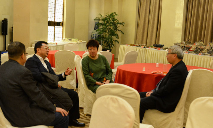 ▲洪長(zhǎng)禧會(huì)長(zhǎng)與杭蕭鋼構(gòu)副總裁、著名專(zhuān)家方鴻強(qiáng)交流