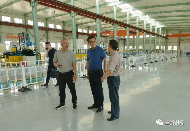 2019年7月3日,盛夏沈城,風(fēng)和日麗。遼寧省住建廳曹桂喆副廳長、建筑業(yè)改革處王曉偉處長、張慶峰副處長一行來到三新集團(tuán)調(diào)研。