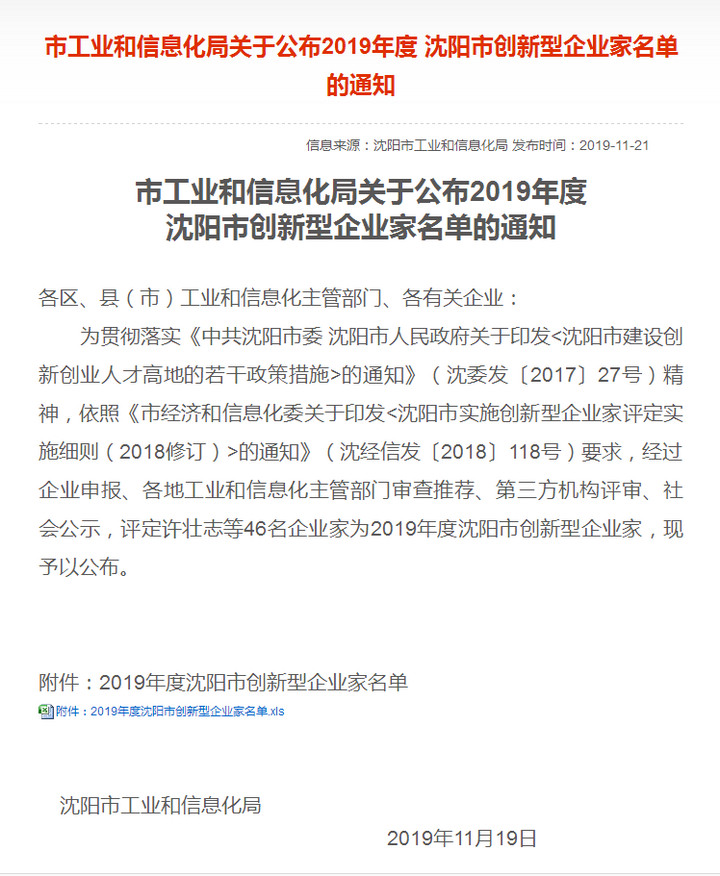 2019年11月19日,洪長禧總經(jīng)理被沈陽市經(jīng)信委授予2019年度沈陽市創(chuàng)新型企業(yè)家稱號。這是對我公司一直以來實施創(chuàng)新戰(zhàn)略成果的肯定,也是對于總和洪總領(lǐng)導下以設(shè)計研發(fā)人員和技術(shù)人員為代表的全體員工創(chuàng)新精神的褒獎!