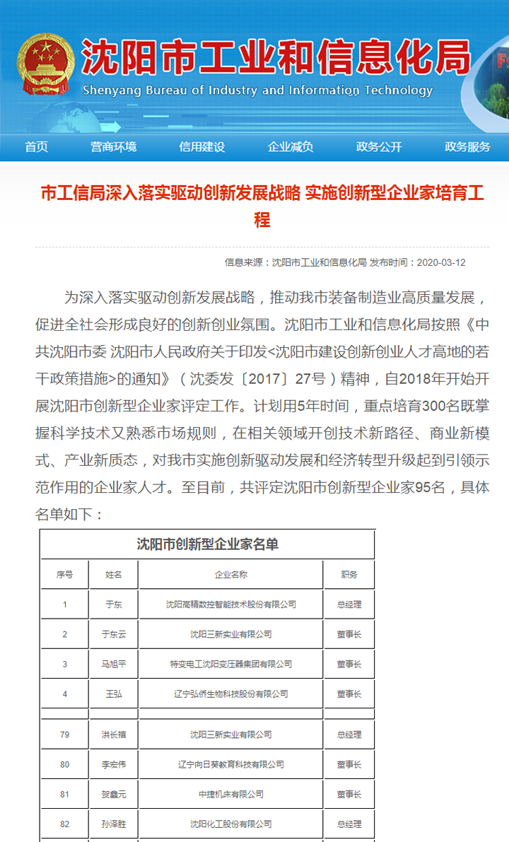 2020年03月12日,于東云董事長(zhǎng)、洪長(zhǎng)禧總經(jīng)理被沈陽(yáng)市經(jīng)信委授予2019年度沈陽(yáng)市創(chuàng)新型企業(yè)家稱(chēng)號(hào)。這是對(duì)我公司一直以來(lái)實(shí)施創(chuàng)新戰(zhàn)略成果的肯定,也是對(duì)于總和洪總領(lǐng)導(dǎo)下以設(shè)計(jì)研發(fā)人員和技術(shù)人員為代表的全體員工創(chuàng)新精神的褒獎(jiǎng)!