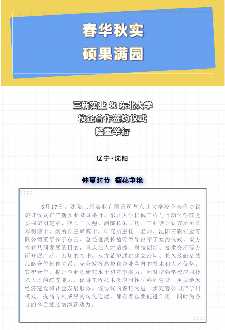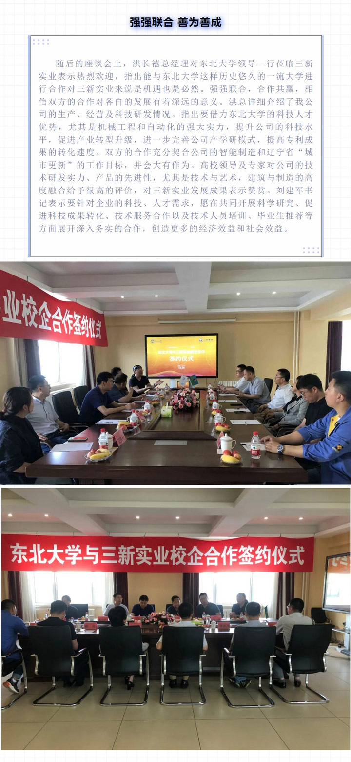 春華秋實(shí),碩果滿園——三新實(shí)業(yè)與東北大學(xué)簽訂校企合作協(xié)議