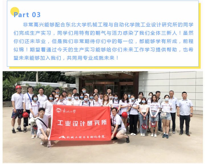 歡迎東北大學(xué)機(jī)械工程與自動(dòng)化學(xué)院工業(yè)設(shè)計(jì)研究所同學(xué)來(lái)我司生產(chǎn)實(shí)習(xí)
