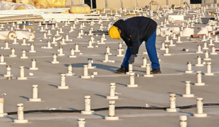 東北的冬季是最大考驗(yàn)。三新專項(xiàng)技術(shù)組優(yōu)化圍護(hù)工藝,攻克低溫TPO 焊接難題;排水天溝內(nèi)置精準(zhǔn)電伴熱系統(tǒng),杜絕凍堵風(fēng)險;光伏支架立桿采用高分子包封件,實(shí)現(xiàn)防水與發(fā)電的無縫銜接。當(dāng)抗風(fēng)揭試驗(yàn)室的模擬狂風(fēng)掠過屋面,這頂 “鳳冠” 用數(shù)據(jù)證明:它不僅是建筑的外衣,更是自然的摯友。