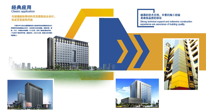 • 凈平開放式金屬幕墻系統(tǒng)----模數(shù)化的預(yù)制構(gòu)造,使安裝更便捷,效率更高。