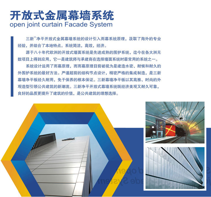 • 三新工業(yè)金屬幕墻系統(tǒng)----是公司多年來設(shè)計、施工實(shí)踐的結(jié)晶,工藝成熟、外觀時尚...